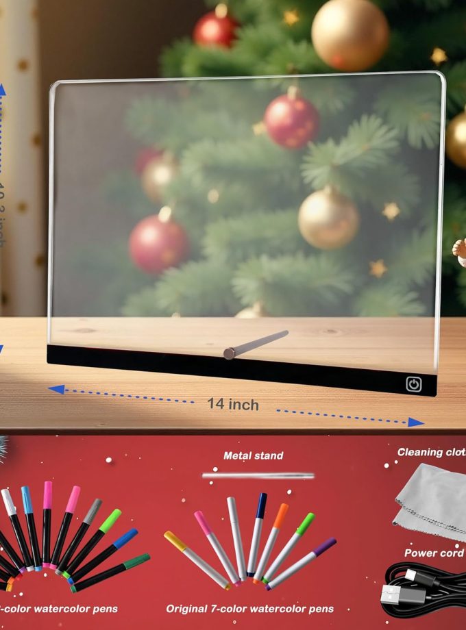 16-Inch Rechargeable Doodle Glow LED Note Board, 7-Color Light Modes, Neon Art Dry Erase Light Up Drawing Pad with Built-in Stand, Sketching Gift Toy for Kids/Girls/Teens, 5 Markers & Tracing Book